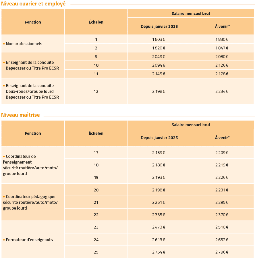 Les organisations représentatives de la profession ont signé le 3 juillet 2025 l’avenant n°109 qui prévoit une augmentation des salaires minima le premier jour suivant la publication de l’arrêté d’extension au Journal Officiel. Attention, rappelons que depuis le 1er janvier 2025, les employeurs doivent obligatoirement appliquer les nouvelles fiches métiers qui prévoient, entre autres, l’alignement des échelons des Bepecaser sur celui des Titre Pro ECSR. En revanche, la valeur du point formation-qualification reste inchangée à 3,47 euros. Même chose pour le montant de l’indemnité de panier qui reste fixé à 6,09 euros.